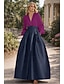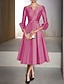 Γραμμή Α Κάτω από το γόνατο Κοκτέιλ Φορέματα Φορέματα για πάρτι Κομψό Μπλοκ χρωμάτων Μεταξένιο Μακρυμάνικο Λαιμόκοψη V Επίσημο Επισκέπτης γάμου Σατέν με Πιασίματα