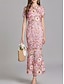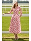 Γραμμή Α Μέχρι τον αστράγαλο Κοκτέιλ Φορέματα Φορέματα για πάρτι Κομψό Βίντατζ Λουλουδάτο Μισό μανίκι Λαιμόκοψη V Γάμου Επίσημο Ροζ φόρεμα Σατέν με Κέντημα Τσέπη
