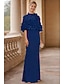 Τρομπέτα Γοργόνα Μακρύ Βραδινά φορέματα Κομψό Στυλ Διασήμων Κοντομάνικο Ζιβάγκο Πάρτυ στον κήπο Γάμου Stretch Crepe με Πλισέ