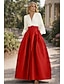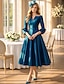 Γραμμή Α Κάτω από το γόνατο Κοκτέιλ Φορέματα Κομψό Λάμψη Μακρυμάνικο Με Κόσμημα Χριστούγεννα Επίσημο Σατέν με Λεπτομέρεια με πέρλα