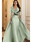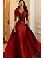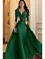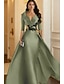 Γραμμή Α Μακρύ Βραδινά φορέματα Τουαλέτα Επίσημο ένδυμα Κομψό Μεταξένιο 3/4 Μήκος Μανικιού Λαιμόκοψη V Γάμου Επίσημο Τσέπη Ελαστικό Σατέν με Φιόγκος(οι)