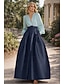 Γραμμή Α Μακρύ Χάντρες Κεντημένο Επίσημο ένδυμα Φόρεμα Μητέρας της Νύφης Βραδινά φορέματα Τουαλέτα Επίσημο ένδυμα Κομψό Μπλοκ χρωμάτων Υψηλός διάσπαση Μισό μανίκι Κολάρο Πουκαμίσου Γάμου Επίσημο Σατέν