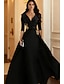 Ίσια Γραμμή Μακρύ Βραδινά φορέματα Φόρεμα με overskirt Επίσημο ένδυμα Κομψό Μικρό Μαύρο Φόρεμα Αμάνικο Με Κόσμημα Χριστούγεννα Επίσημο Τσέπη Σατέν με Κέντημα