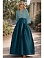 Γραμμή Α Μέχρι τον αστράγαλο Κοκτέιλ Φορέματα Κομψό Υψηλός διάσπαση 3/4 Μήκος Μανικιού Κολάρο Πουκαμίσου Επίσημο Τσέπη Σατέν με Διακοσμητικά Επιράμματα