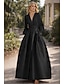 Γραμμή Α Μέχρι τον αστράγαλο Κοκτέιλ Φορέματα Κομψό Βίντατζ 3/4 Μήκος Μανικιού Λαιμόκοψη V Επίσημο Τσέπη Σατέν με Φιόγκος(οι) Πιασίματα