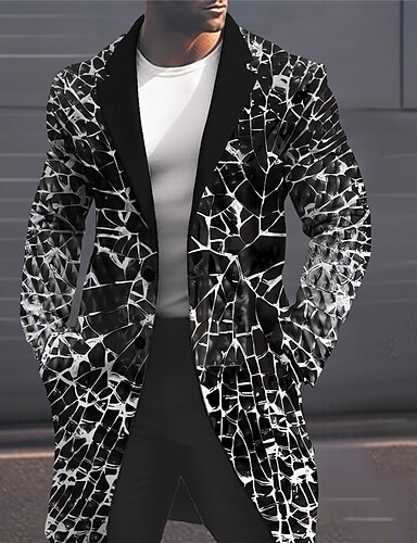Ανδρικά Γεωμετρικό Linie Πανωφόρι Παλτό Διατηρείτε Ζεστό Άνετο Καθημερινό Επιχείρηση Καθημερινά 3D εκτύπωση Κουμπιά Μπροστινή τσέπη Άνοιξη Φθινόπωρο Χειμώνας Εγκοπή Μακρυμάνικο Μαύρο Λευκό