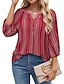 Γυναικεία Δαντελένια μπλουζάκια Κομψό Μακρυμάνικο Λαιμόκοψη V Κανονικά μπλουζάκια Γάμος στην παραλία Καθημερινά Σαββατοκύριακο Μαύρο Ρουμπίνι Σομόν Καλοκαίρι Άνοιξη
