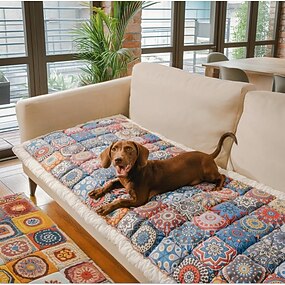 Κάλυμμα μαξιλαριού καναπέ σε μποέμ στυλ, ύφασμα από βαμβάκι, κατάλληλο για όλες τις εποχές, υψηλής ελαστικότητας, μαξιλάρι καθίσματος από βαμβάκι, αντιολισθητικό, φιλικό προς τα κατοικίδια