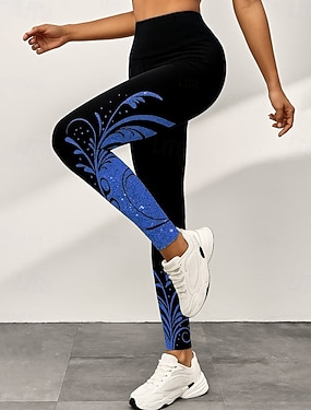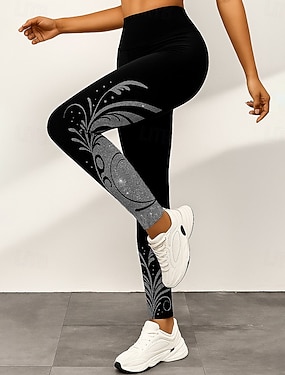 Γυναικείες Λετζίνγκ Παντελόνια Σχεδιαστή Sparkle Σαφής Λάμψη Ύψους Αγκώνα Υψηλή Μέση Γραφικές Εκτυπώσεις Λουλούδι Φλοράλ Εκτύπωση Έλεγχος Κοιλιάς Άνοδος Γλουτών Άνεση Υψηλή Ελαστικότητα Yoga