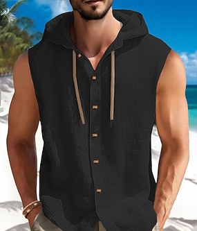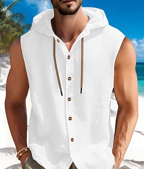 Γυναικεία Αμάνικη Μπλούζα Λινό από ψεύτικο βαμβάκι Κουμπιά Σκέτο Χαβανέζα Βασικό Αμάνικο Στρογγυλή Λαιμόκοψη Κανονικά μπλουζάκια Causal Σαββατοκύριακο Θαλασσί Μαύρο Λευκό Πράσινο του τριφυλλιού