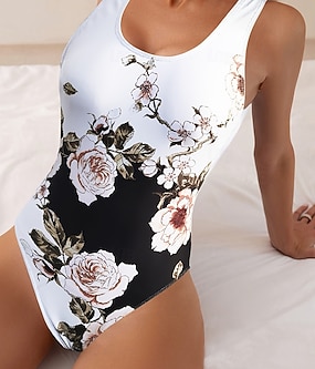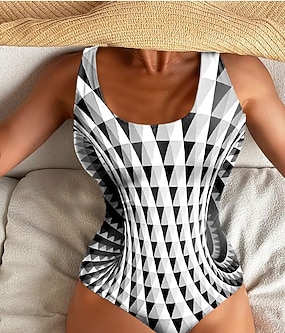 Γυναικείο Μονό κομμάτι μαγιό Αδυνάτισμα Πολύχρωμη εκτύπωση Έλεγχος κοιλιάς Μαγιό Γεωμετρικό κατακόρυφο ριγέ Σκοπ λαιμό Αμάνικο Αθλητικά ρούχα Μαύρο Άσπρο Καλοκαιρινή Μόδα δίπλα στην πισίνα