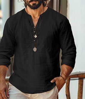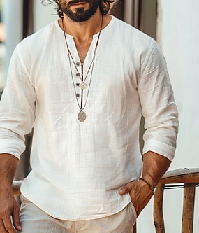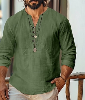 Ανδρικά λινό πουκάμισο Στυλ Βίκινγκ Καλοκαιρινό πουκάμισο Ρούχα παραλίας Casual πουκάμισο Σκέτο Διακοπές Curise Λευκό Πράσινο Μακρυμάνικο Λαιμόκοψη V Ανοιξη καλοκαίρι Ρούχα
