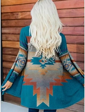 Γυναικεία Casual Jacket Διατηρείτε Ζεστό Άνετο Ακανόνιστος γιακάς Ανοικτό Μπροστά Κομψό Βίντατζ Μοντέρνα Καθημερινό Γεωμετρικό Δρόμος Causal Ένδυση γυμναστικής και άθλησης Καθημερινά Μακρύ Χωρίς Γιακά