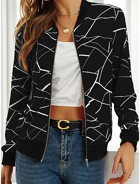 Γυναικεία Casual Jacket Διατηρείτε Ζεστό Γρήγορο Στέγνωμα Φερμουάρ Τσέπη Μοντέρνα Καθημερινά Καθημερινό Αφηρημένο Διακοπές Causal Καθημερινά Κανονικό γιακά μπέιζμπολ Κανονικό Μακρυμάνικο