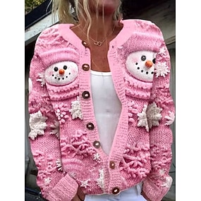 Γυναικεία Ζακέτα Καθημερινά Χριστουγεννιάτικο δέντρο Χιονάνθρωπος Κοτλέ Στρογγυλή Ψηλή Λαιμόκοψη Λαιμόκοψη V Κουμπιά Στάμπα Μακρυμάνικο Κανονικά μπλουζάκια Πλέκω ΕΞΩΤΕΡΙΚΟΥ ΧΩΡΟΥ Σαββατοκύριακο