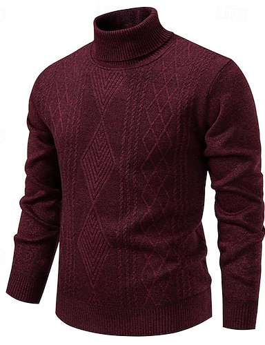 Ανδρικά Πουλόβερ Πουλόβερ πουλόβερ Κοτλέ Πλέκω Κανονικά μπλουζάκια Πλεκτό Στενή Εφαρμογή Σκέτο Στρογγυλή Ψηλή Λαιμόκοψη Πλεκτά Σύγχρονο Causal Καθημερινά Ρούχα Ρούχα Φθινόπωρο Μαύρο Μπορντώ L XL 2XL