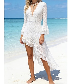 Γυναικεία Μακρύ Φόρεμα Μάξι Φόρεμα Μίνι φόρεμα Λευκό φόρεμα Φόρεμα Φόρεμα Boho Βίντατζ Μοντέρνα Βασικό Καθημερινά Διακοπές Εξόδου Κανονικό Φλοράλ Σκέτο Μακρυμάνικο Λαιμόκοψη V Λευκό