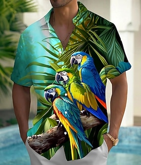 Ανδρικά Πουλί Παπαγάλος Τροπικά φυτά Χαβανέζικο πουκάμισο Πουκάμισο με κουμπιά Πουκάμισο Aloha Κοντομάνικο Χαβανέζα Causal Διακοπές Καλοκαίρι Άνοιξη Απορρίπτω 3D