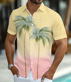 Ανδρικά Δέντρο καρύδας Χρωματική κλίση Τροπικά φυτά Χαβανέζικο πουκάμισο Πουκάμισο με κουμπιά Πουκάμισο Aloha Κοντομάνικο Χαβανέζα Θέρετρο Διακοπές Αργίες Ρούχα παραλίας Καλοκαίρι Άνοιξη Απορρίπτω
