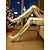 Γυναικείες λευκές δαντελένιες μπότες μέχρι τη μέση της γάμπας με κοίλα σκαλιστά χρυσά τακούνια - κομψές μπότες από mesh για γάμους, πάρτι στον κήπο και βικτωριανό cosplay