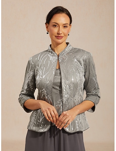 Γυναικεία Μπλούζα Ντυτές μπλούζες Δίδυμο Πούλιες Φτερό Κομψό 3/4 Μήκος Μανικιού Μανδαρίνο Κολλάρο Κανονικά μπλουζάκια Βραδινό Πάρτυ Επίσημο ένδυμα Γκρίζο Άνοιξη Φθινόπωρο Χειμώνας