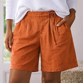 Γυναικεία Βαμβακερό λινό σορτς Σορτσάκια Καλοκαιρινό σορτς Σορτς παραλίας Διακοπές Μοντέρνα Βασικό σύντομο Μεσαία Μέση Συμπαγές Χρώμα Σκέτο Τσέπη Άνεση Moale Αναπνέει Ανελαστικό Streetwear