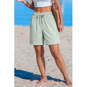 Γυναικεία Σορτσάκια Καλοκαιρινό σορτς Σορτς παραλίας Casual σορτς Διακοπές Μοντέρνα Καθημερινά σύντομο Ψηλή Μέση Συμπαγές Χρώμα Σκέτο Κορδόνι Τσέπη Ελαστική ζώνη μέσης Άνεση Moale Αναπνέει Ανελαστικό