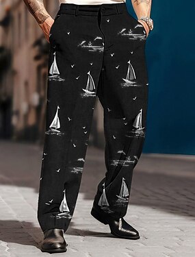 Ανδρικά Ιστιοφόρο Παντελόνι επίσημο Μεσαία Μέση Business Casual Επίσημο Γάμου Καθημερινή Ένδυση Τσέπη Παντελόνι σε ίσιο πόδι Καλοκαίρι Άνοιξη Φθινόπωρο 3D εκτύπωση Μαύρο Λευκό
