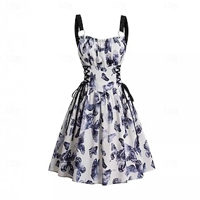 Ρετρό / Βίντατζ Δεκαετία του 1950 Ροκμπίλι Swing φόρεμα Φόρεμα Flare Πεταλούδα Γραμμή Α Φανταχτερή Φόρεμα Γυναικεία Μασκάρεμα Πάρτι Τσαγιού Καθημερινά Bachelorette Πάρτι Ενήλικες