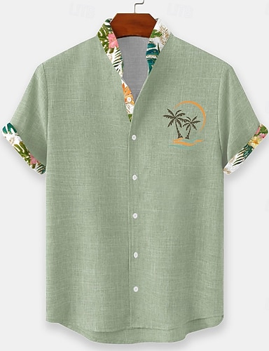 Ανδρικά Δέντρο καρύδας Τροπικά φυτά Λουλούδια Χαβανέζικο πουκάμισο Πουκάμισο με κουμπιά Πουκάμισο με γιακά Κοντομάνικο Χαβανέζα Διακοπές στην παραλία Καλοκαίρι Άνοιξη Μανδαρίνο Κολλάρο 3D