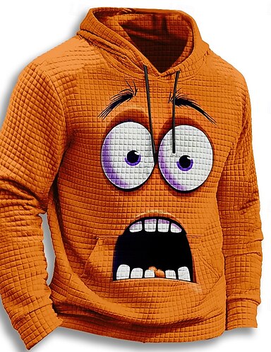 Ανδρικά Γεωμετρικό Καρό Φούτερ με Κουκούλα Πουλόβερ Μοντέρνα Καθημερινά Μακρυμάνικο Στρογγυλή Ψηλή Λαιμόκοψη Σπίτι Πάρτι Streetwear Πορτοκαλί Καφέ Πράσινο του τριφυλλιού Κορδόνι Φθινόπωρο Χειμώνας