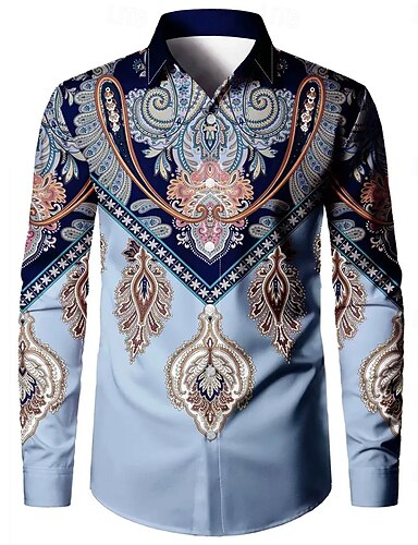 Ανδρικά Λαχούρι Etnic Λουλούδια Πουκάμισο Πουκάμισο με κουμπιά Casual Φόρεμα Πουκάμισο Μακρυμάνικο Vintage ρετρό Διακοπές Καθημερινά Streetwear Καλοκαίρι Άνοιξη Απορρίπτω 3D εκτύπωση γιακά πουκάμισα