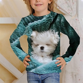 Κοριτσίστικα 3D Σκύλος Κοντομάνικη μπλούζα Κοντομάνικο Μακρυμάνικο Άνοιξη Φθινόπωρο Μοντέρνα Βασικό Παιδιά 4-12 χρόνια Στρογγυλή Ψηλή Λαιμόκοψη ΕΞΩΤΕΡΙΚΟΥ ΧΩΡΟΥ Causal Καθημερινά Κανονικό