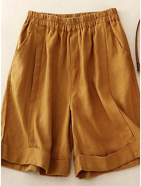 Γυναικεία Λινό από ψεύτικο βαμβάκι κινέζικα Σορτσάκια Καλοκαιρινό σορτς Διακοπές Μοντέρνα Κομψό στυλ street Μήκος γόνατος Ψηλή Μέση Σκέτο Τσέπη Ελαστική ζώνη μέσης Άνετα Άνεση Moale Ελαστικό