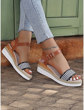 γυναικεία πέδιλα εσπαντρίγιας houndstooth με λουράκι αστραγάλου – casual καλοκαιρινά σανδάλια πλατφόρμα για διακοπές και καθημερινή χρήση
