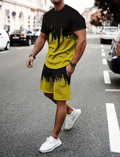 Ανδρικά Γραφική 2 τεμ Σετ μπλουζάκια Καλοκαιρινές κορυφές Κοντομάνικο Κοντό παντελόνι Στρογγυλή Ψηλή Λαιμόκοψη Ένδυση γυμναστικής και άθλησης Αθλήματα & Ύπαιθρος Αθλημα Καθημερινά Λαιμόκοψη Καλοκαίρι