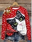 Χριστούγεννα Γυναικεία Μπλουζάκι Γραφική Γάτα Χριστουγεννιάτικο δέντρο Βίντατζ Μοντέρνα Στυλάτο Μακρυμάνικο Στρογγυλή Ψηλή Λαιμόκοψη Κανονικά μπλουζάκια Καθημερινά Σαββατοκύριακο Στάμπα