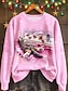 Γυναικεία Φούτερ Γραφική Ζώο Γάτα Καθημερινό Μακρυμάνικο Στρογγυλή Ψηλή Λαιμόκοψη Κανονικά μπλουζάκια Δρόμος Καθημερινή Ένδυση Causal Στάμπα Ανθισμένο Ροζ Βυσσινί Καφέ Πράσινο του τριφυλλιού