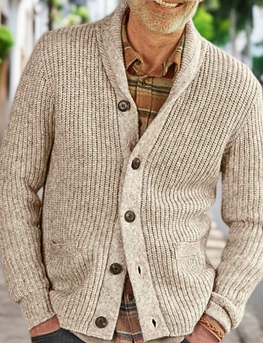 Ανδρικά Πουλόβερ ζακέτα Φόρεμα πουλόβερ Ογκώδης ζακέτα Cropped πουλόβερ Καλώδιο Πλέκω Κανονικό Κουμπί επάνω Σκέτο Πέτο Βίντατζ Θερμαντικά Causal Καθημερινά Ρούχα Ρούχα Μανίκια Ρεγκλάν