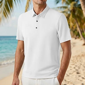 Ανδρικά Πουκάμισο γκολφ Μπλουζάκι πόλο με πλέξη βάφλα Causal Επιχείρηση Κλασσικά Κοντομάνικο Μοντέρνα Συμπαγές Χρώμα Κουμπιά Καλοκαίρι Άνοιξη Χαλαρή Εφαρμογή