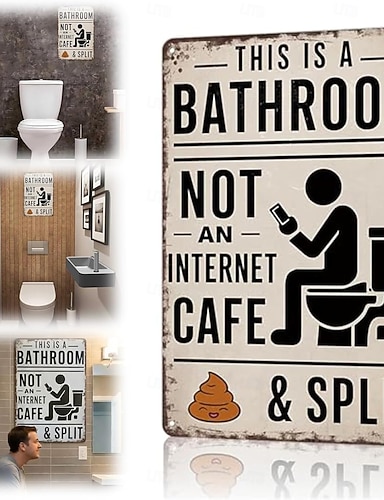 Αυτή είναι μια πινακίδα μπάνιου, όχι internet cafe, αστεία μεταλλική πινακίδα μπάνιου από κασσίτερο vintage χιουμοριστική διακόσμηση τοίχου, ρουστίκ τέχνη τοίχου μπάνιου από αλουμίνιο για αγροικία,