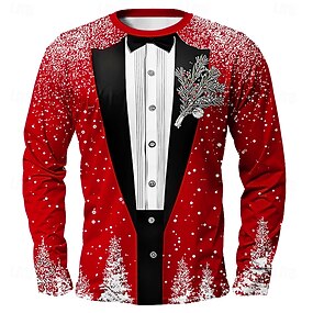Χριστούγεννα Ανδρικά Smoching Στολές Μπλουζάκι Μακρυμάνικο Κοντομάνικη μπλούζα 3D εκτύπωση Στρογγυλή Ψηλή Λαιμόκοψη Πουκάμισο Μοντέρνα Βασικό 3D Δρόμος Causal Καθημερινά Κόκκινο 3 Μαύρο Λευκό