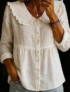 Γυναικεία Πουκάμισο Μπλούζα Λινό από ψεύτικο βαμβάκι Σκέτο Βίντατζ Στυλάτο Μοντέρνα Μακρυμάνικο Κολάρο Πουκαμίσου Κανονικά μπλουζάκια Καθημερινά Αργίες Εξόδου