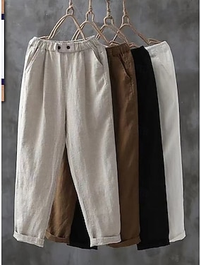 Γυναικεία Λινό από ψεύτικο βαμβάκι Παντελόνια Casual παντελόνι Καλοκαίρι παντελόνι Διακοπές Μοντέρνα Κομψό στυλ street Μέχρι τον αστράγαλο Ψηλή Μέση Σκέτο Τσέπη Ελαστική μέση Άνετο Ανελαστικό