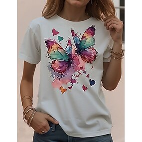 Γυναικεία Μπλουζάκι Στάμπα Γραφική Ζώο Πεταλούδα Βίντατζ Στυλάτο Βασικό Κοντομάνικο Στρογγυλή Ψηλή Λαιμόκοψη Στρογγυλή Λαιμόκοψη Κανονικά μπλουζάκια Καθημερινά Σαββατοκύριακο