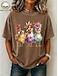 Γυναικεία Μπλουζάκι Στάμπα Ζώο Γάτα 3D Βασικό Κοντομάνικο Στρογγυλή Λαιμόκοψη Κανονικά μπλουζάκια Καθημερινά Σαββατοκύριακο Καφέ