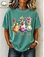 γυναικείο μπλουζάκι βασικό τύπωμα γάτας κοντομάνικο κανονικό μπλουζάκι στρογγυλή λαιμόκοψη καθημερινά Σαββατοκύριακο κόκκινο μπλε μωβ πράσινο γκρι