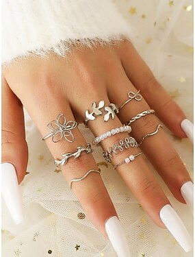 Γυναικείο σετ δαχτυλιδιών 10 τεμαχίων σε μποέμ στυλ, ρυθμιζόμενα δαχτυλίδια από χρυσό και ασημί κράμα, στοιβαζόμενα για διακοπές στην παραλία, φεστιβάλ και καθημερινή casual εμφάνιση