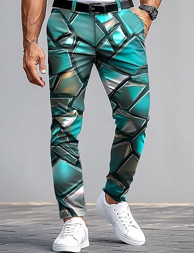 Καρό / Τετραγωνισμένο Γραφικά Σχέδια Γεωμετρία Καθημερινό Ανδρικά 3D εκτύπωση Παντελόνια ΕΞΩΤΕΡΙΚΟΥ ΧΩΡΟΥ Δρόμος Φορέστε στη δουλειά Πολυεστέρας Ανθισμένο Ροζ Θαλασσί Πράσινο Τ M L Μεσαία Μέση