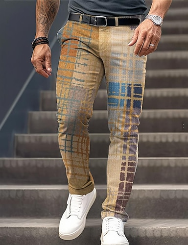 Ανδρικά Παντελόνι επίσημο Κουμπιά Τσέπη 3D εκτύπωση Καρό Συνδυασμός Χρωμάτων Κουρελού Πλήρες μήκος Επιχείρηση Causal Βίντατζ Πορτοκαλί Ανελαστικό